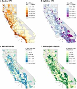 Ma et al. examine the relationship between heatwave intensity and acute care utilisation for mental and neurological disorders in California from 2006 to 2019. The study finds that nighttime heatwaves are more strongly associated with most disorder subtypes, while daytime heatwaves have a greater impact on conduct disorders. As nighttime heatwaves become more frequent, the authors call for innovative heat preparedness strategies and increased awareness among public health practitioners.